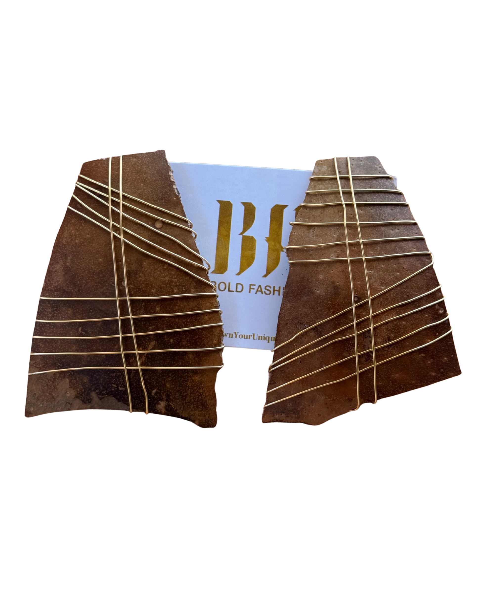 One of a kind natural calabash adorned with gold wire earrings. Each earring is unique and has its own shape. Adorned with gold plated wire and stainless steel post back for allergy sensitive skin.