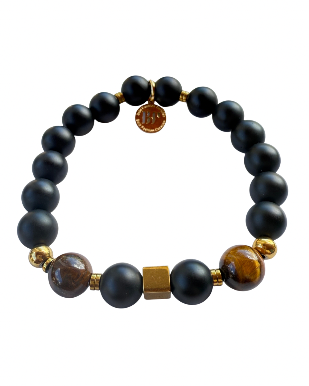 For the man who leads with courage and decisive strength. Matte Onyx provides grounding and protection, Tiger Eye ignites confidence and bold action, while gold hematite strengthens focus, resilience, and mental clarity.