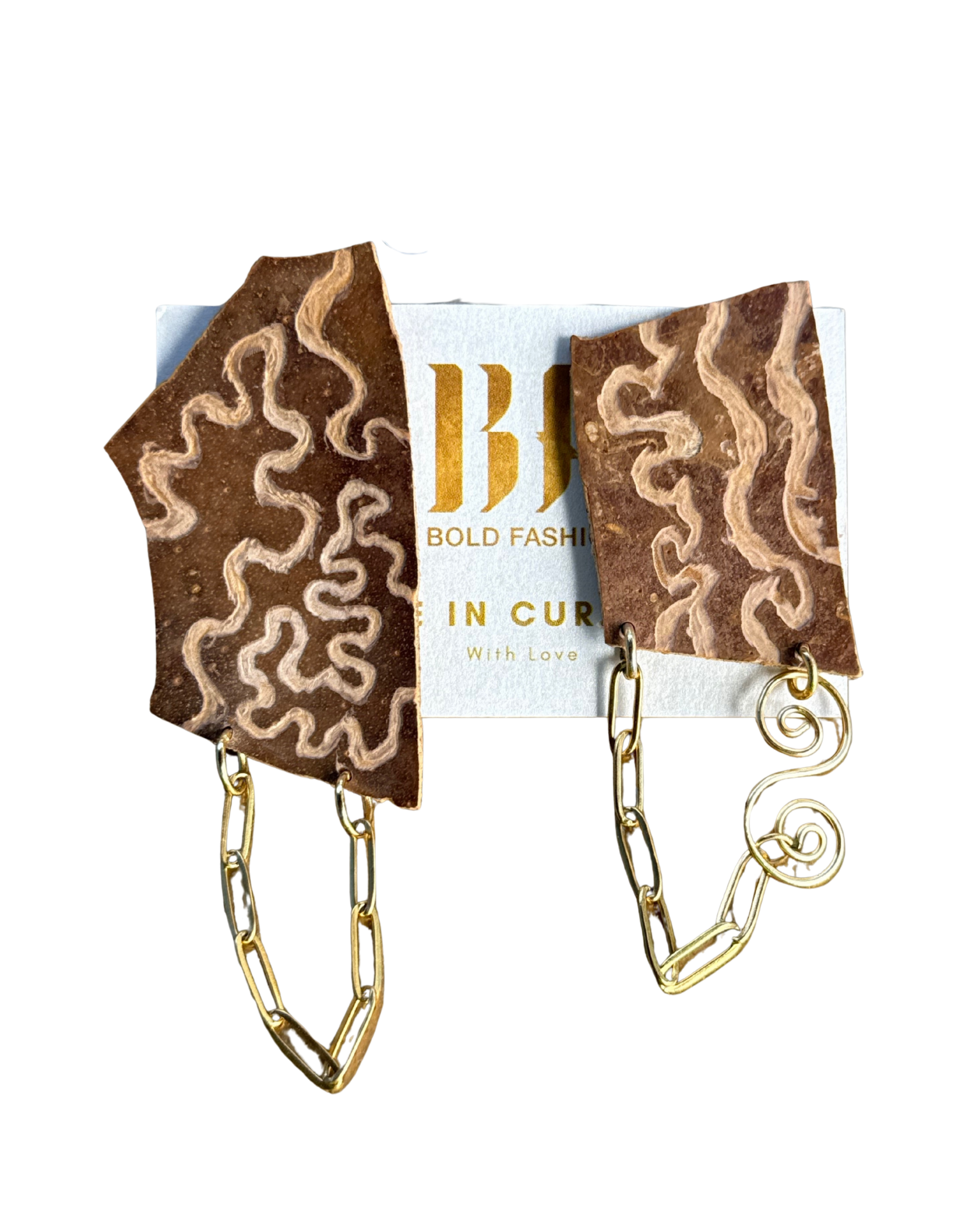 Each earring begins as a natural calabash shell, carefully carved and transformed into wearable art symbolizing the journey from raw beginnings to powerful becoming. The organic textures and carved details celebrate imperfection, reminding you that strength is rooted in your story.